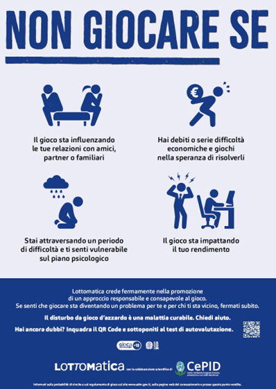 The campaign, in addition to underlining which conditions are most at risk, invites all players to undergo the self-assessment test to measure the presence of any situations of propensity towards pathological gambling.